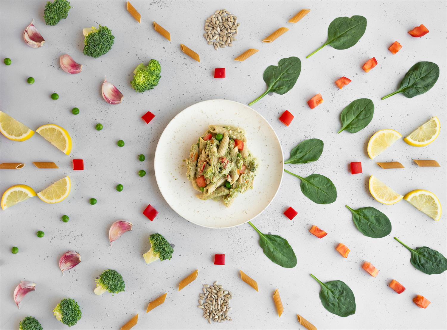Gekookte volkoren penne (durumTARWEgries (GLUTEN), water) (32%), broccoli (10%), tomaat (6%), spinazie (6%), rode paprika (4%), doperwten (4%), water, kookroom (MELK (LACTOSE) (kookroom, maïszetmeel), zonnebloempitten, raapzaadolie, volle MELKpoeder (LACTOSE), aardappelzetmeel, citroensap, zeezout, edelgist, knoflook, specerijen.
